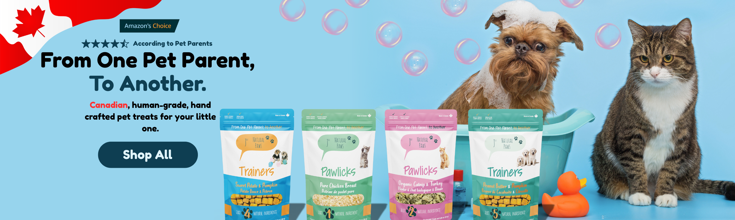 Yes! Our treats are proudly 100% Canadian. They're made right here in Canada using locally sourced, high-quality ingredients. From production to packaging, we’re committed to supporting Canadian suppliers and maintaining the highest standards of safety and quality.